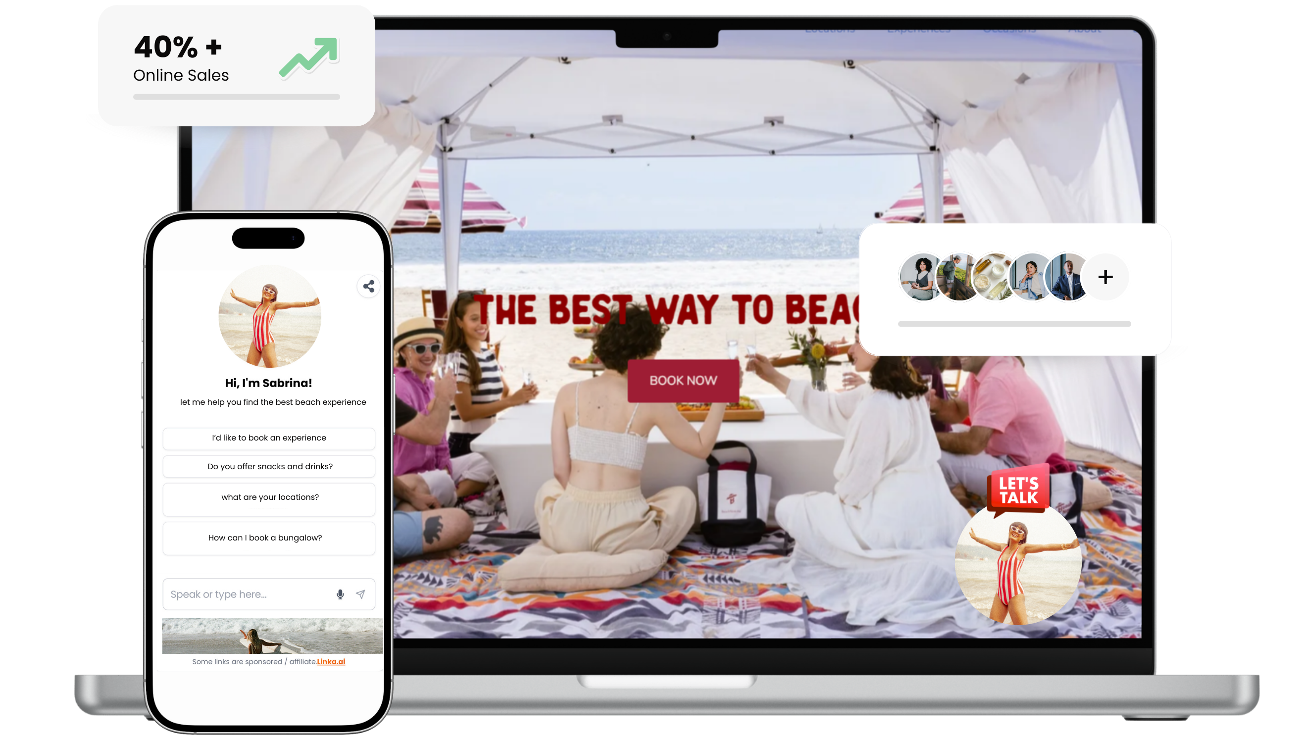 Launch your personal AI agent that chats, recommends, captures leads, and guides your audience to bookings, sales and affiliate purchases, automatically.