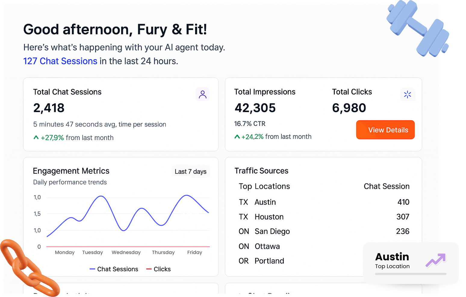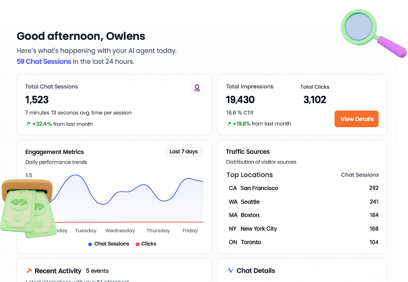 4. Track everything: inside your dashboard Questions, clicks, conversions, high-intent buyers,product insights.