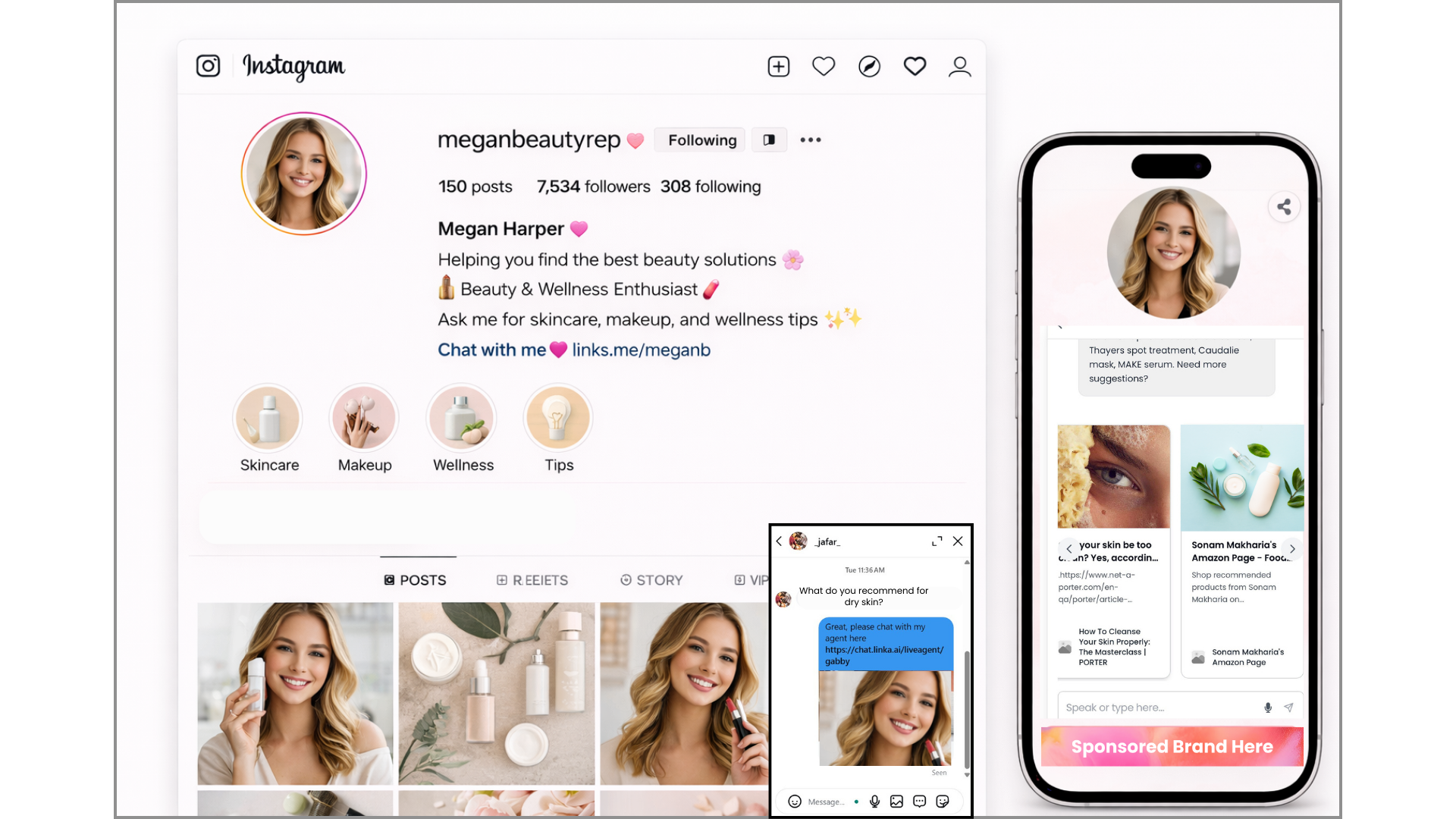 Add your Linka agent to your bio, Instagram DMs, website, or content so your audience can start asking questions and getting recommendations.